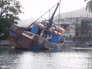 Hurrikaanin jäljiltä lojumaan jäänyt paatti.Venezuelalaiset purkavat niitä osiin ja vievät metallin kotimaahansa. |